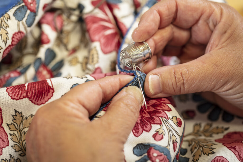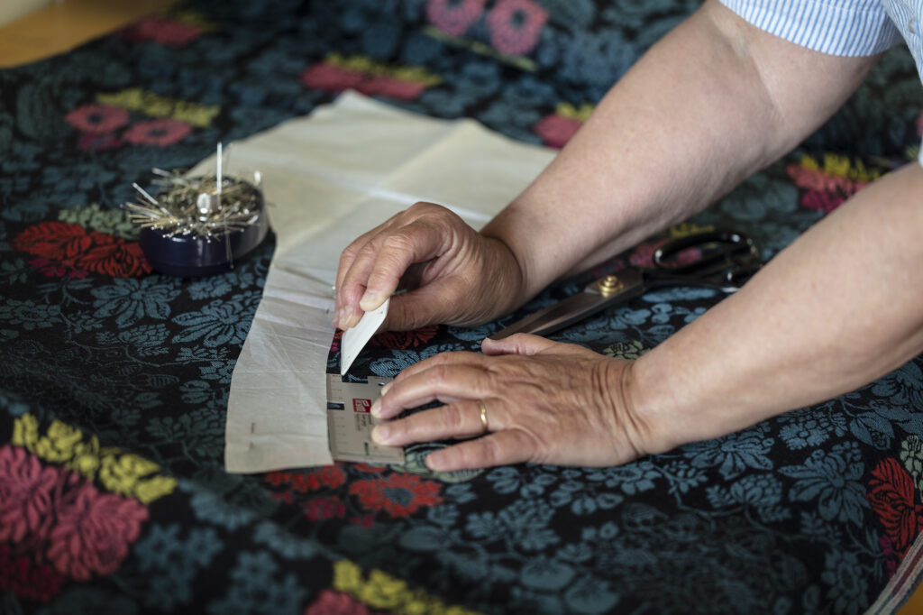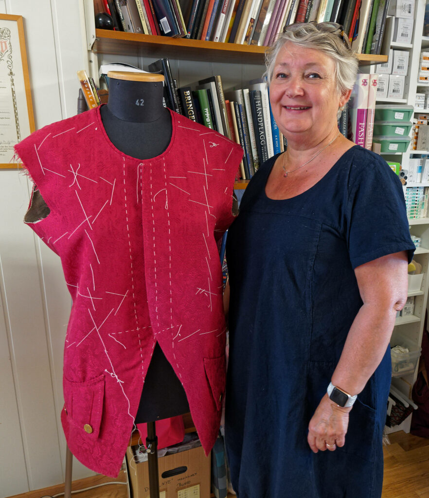 – Mange bunader sitter ikke så veldig pent. Jeg hadde lyst til å se hvordan de satt på kroppen tidligere og om sømmen på folkedraktene hadde innvirkning på snittet. – I dette faget blir du aldri utlært. I hvert fall ikke med den typen bunader jeg jobber med. Plutselig dukker det opp noe som gjør at jeg må endre syn. Det er dét som gjør faget så spennende, mener hun. Bunadene hennes bygger på folkedrakttradisjonen, og hun syr for hånd. Hun er også opptatt av at alt skal være i naturmaterialer, og snakker varmt om de gamle linskjortene. Dessuten arbeider hun med dåpsluer og tilbyr kurs med mønster og materialer.